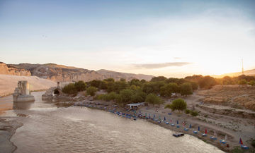 'Stone Shell Silent' series reveals the flooding of Hasankeyf, a city on the Tigris River in southeastern Turkey, which was actually declared a nature conservation area by Turkey in 1981, and the ecological destruction in the region. The Ilısu Dam, a so-called human-centered "civilization" project, has displaced some 80,000 people in addition to the immense history it has submerged. It has also led to the destruction of the Tigris Valley, which has a very important biodiversity. The impact of the dam on the Tigris was not only environmental, but also socio-cultural. The images in this series document the changes over time and the organized destruction of nature and culture. As the traces of antiquity are erased, time and space, life and death, power and opposition become entangled. The separation of life and death, characteristic of modernity, becomes intertwined with this destruction. The familiar way of life is turned inside out. The destruction affects those who lost their lives as well as those who lived. Dead bodies that had become one with nature are (re)exposed to a colonialist injury. As the historical traces of communal life are erased, a hegemonic process of cultural construction takes place. This is a story that is not alien to "us," it is our story being told.